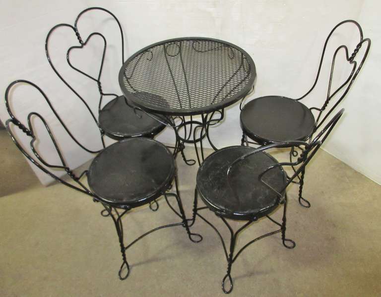 5 Pc Ice Cream Parlor Set 30 D Round Table And 4 Chairs Twisted Wrought Iron Legs And Heart Art Antiques Collectibles Online Auctions Proxibid
