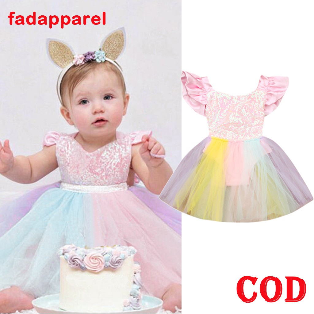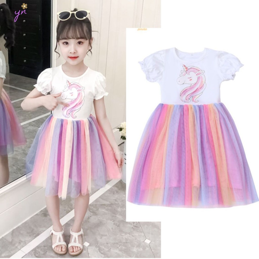 Cod Kids Dress Baby Unicorn Rainbow Tutu Kid Girl Dress Shopee Philippines