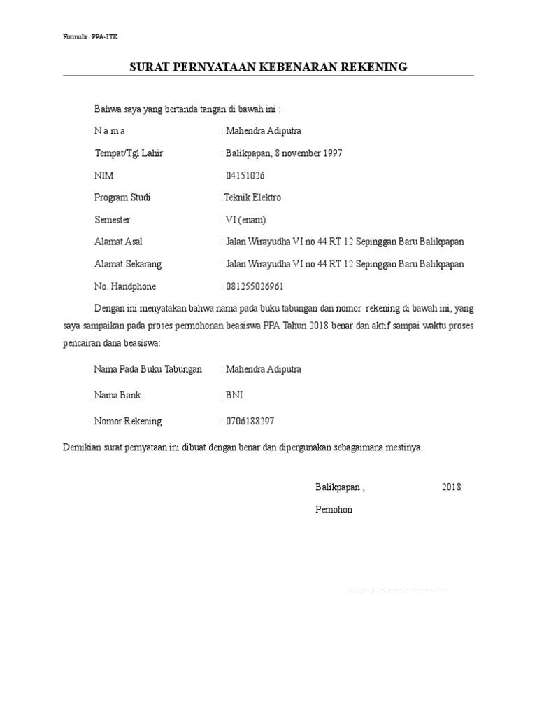 Surat Pernyataan Kebenaran Rekening (1).doc